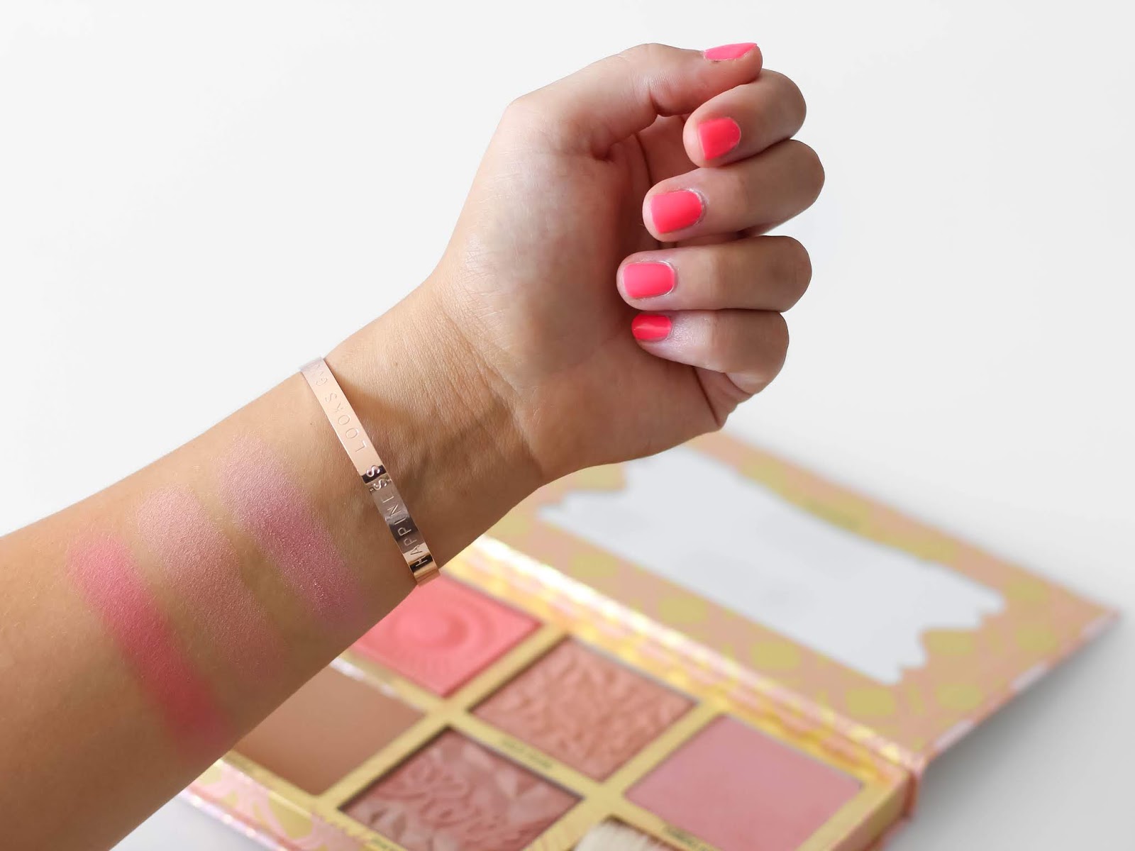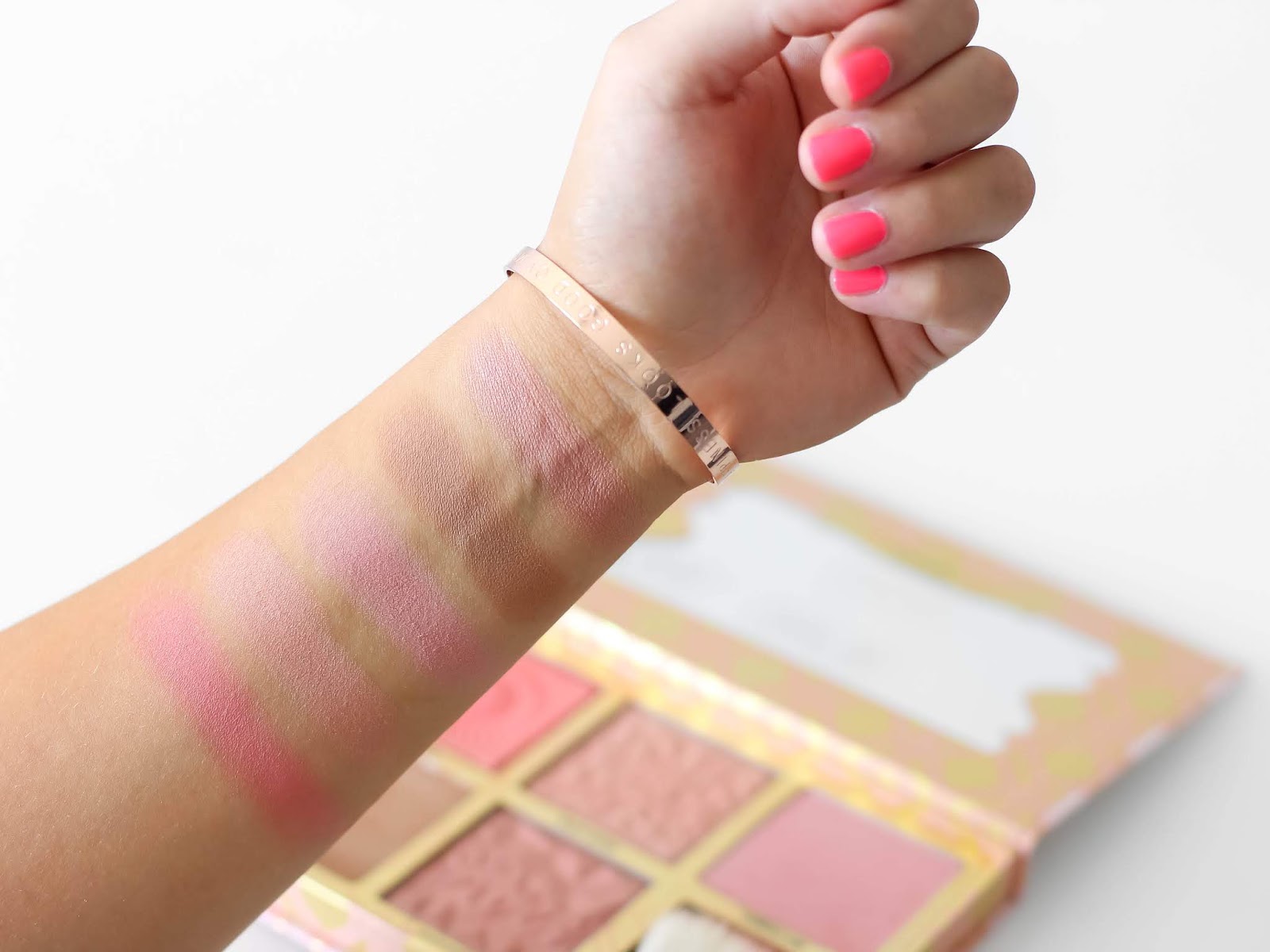 Pudrové produkty Benefit na tváře mi dobře drží a kdybych měla zmínit moje dva must have kousky, vybrala bych Hoola Bronzer a Galifornia tvářenku. Naopak mi svým odstínem nejméně sedí Rockateur a jak je vidět na swatchích nové Blush Bar paletky, Dandelion, Rockateur a Gold Rush jsou si docela podobné.