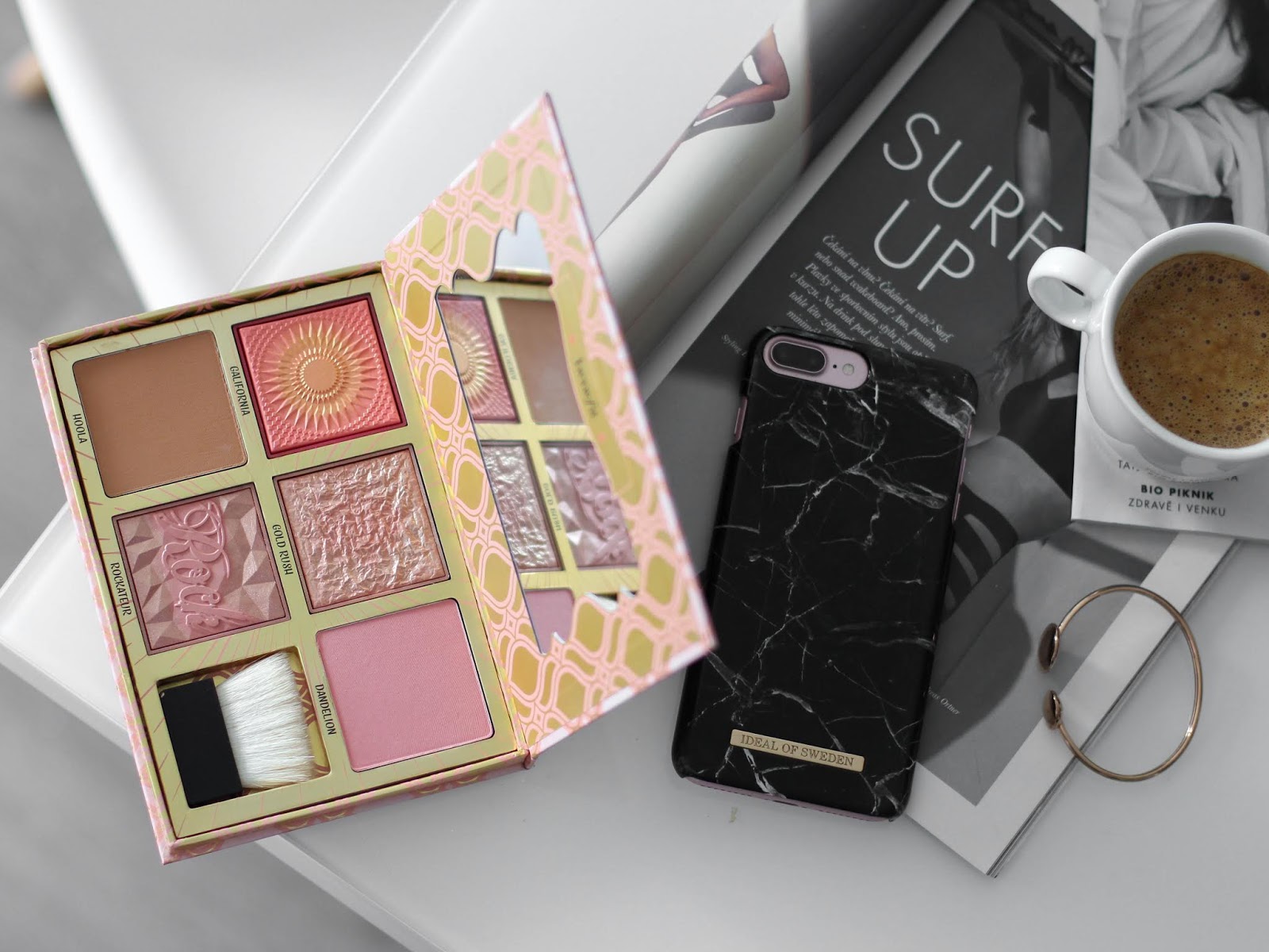 O paletce s tvářenkami a bronzery raději mluvit moc nebudu. 🙂 Blush Bar jsem si pořídila hned, jak se objevila na eshopu a teď už je vyprodaná. Nicméně, pět plných balení za cenu dvou, je určitě super deal. Blush Bar navíc obsahuje novinku v podobě tvářenky Gold Rush, která je sice krásná, ale trochu mě naštval ten zlatý over spray. Pod ním je ale hezká růžová tvářenka, takže to Benefitu odpustím. 🙂 V dnešním článku ji zmiňuji hlavně proto, že jednotlivé tvářenky a bronzery z paletky jsou běžně dostupné a třeba Hoola bronzer je stále jeden z mých nejoblíbenějších bronzerů, který mám nejen v paletkách, ale i samostatně.