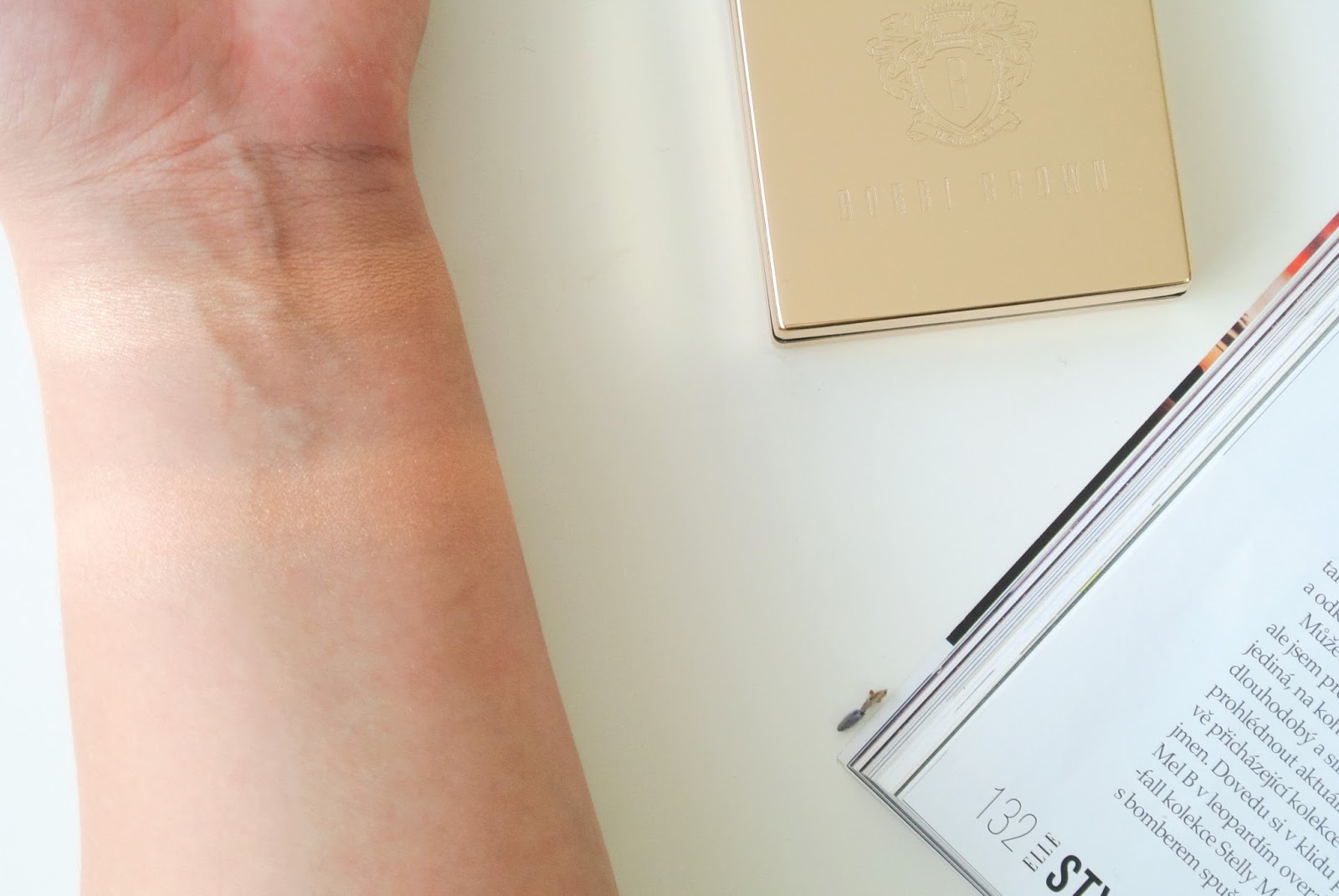 Asi bych ani nedokázala spočítat, kolikrát jsem v souvislosti s Bobbi Brown prohlašovala něco jako, rozjasňující produkty Bobbi prostě umí. S tímhle kompaktem to není jiné. Nádherný, luxusní, poctivý kompakt ve zlaté barvě s vyraženým logem. Kvalitní a hlavně použitelné zrcátko a překrásný třpytivý pudr ve zlaté barvě, s teplým, lehce broskvovým tónem. Myslím, že další slova už jsou zbytečná. Byla to láska na první pohled a pak na všechny ty ostatní.