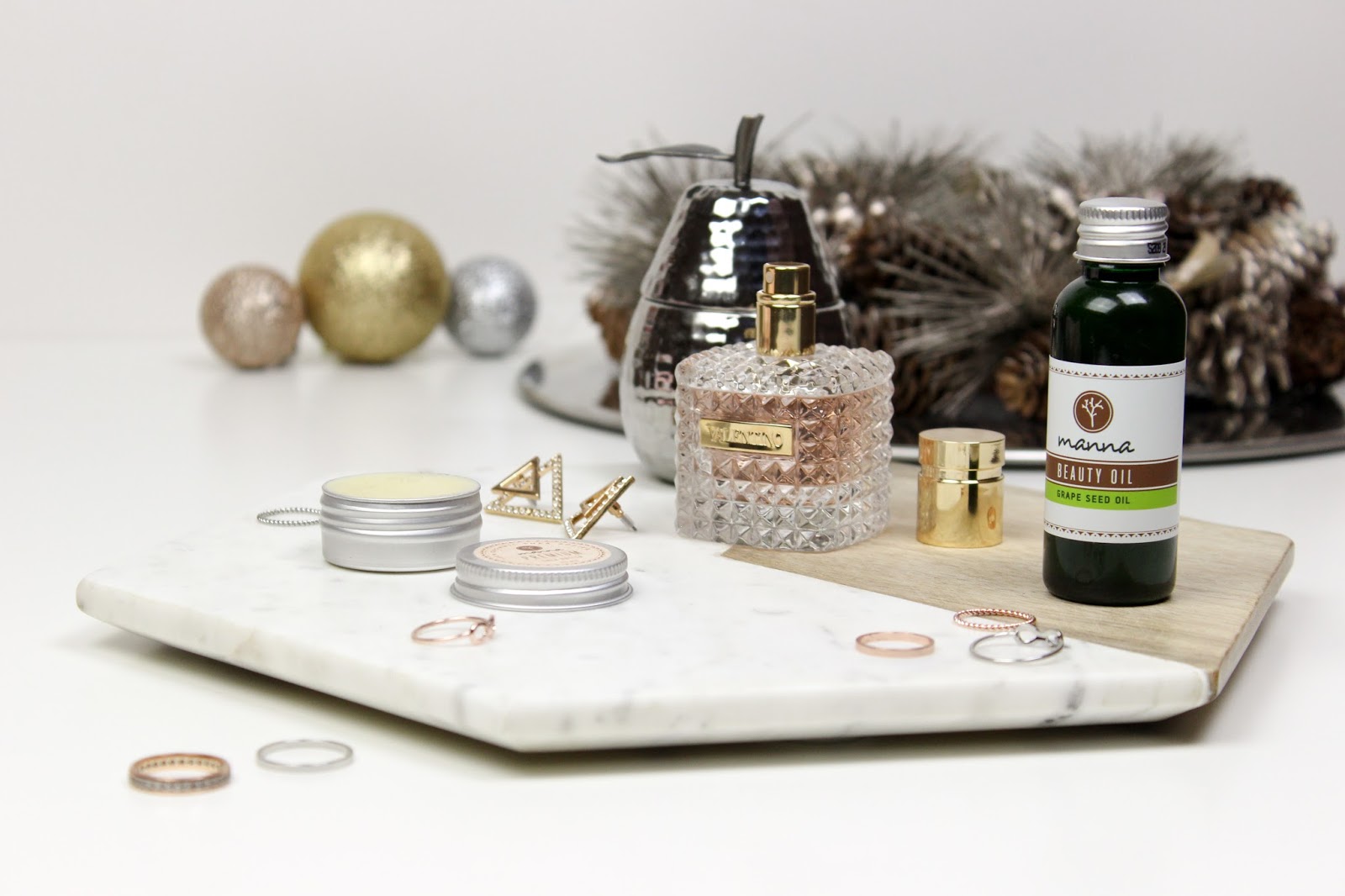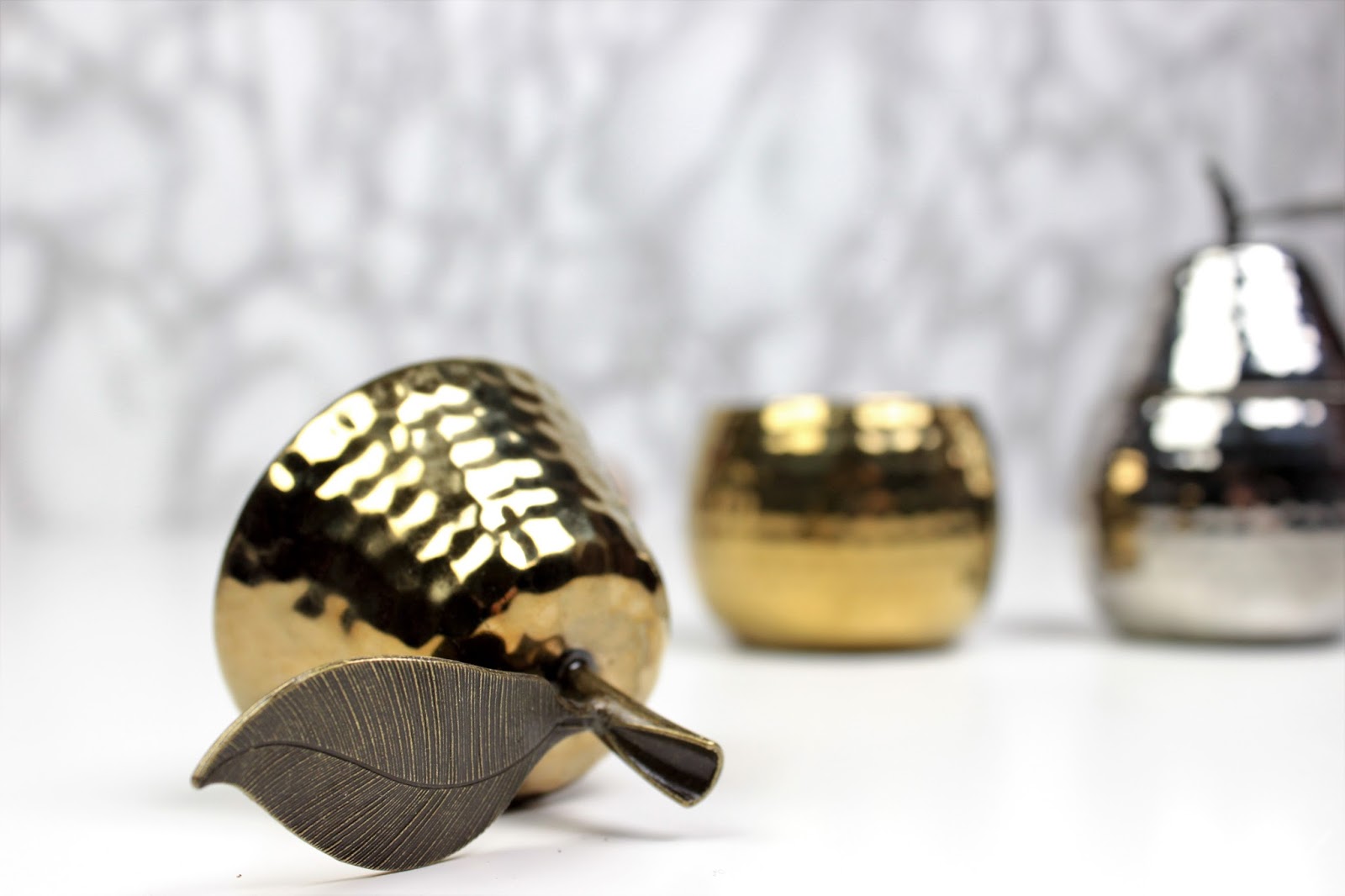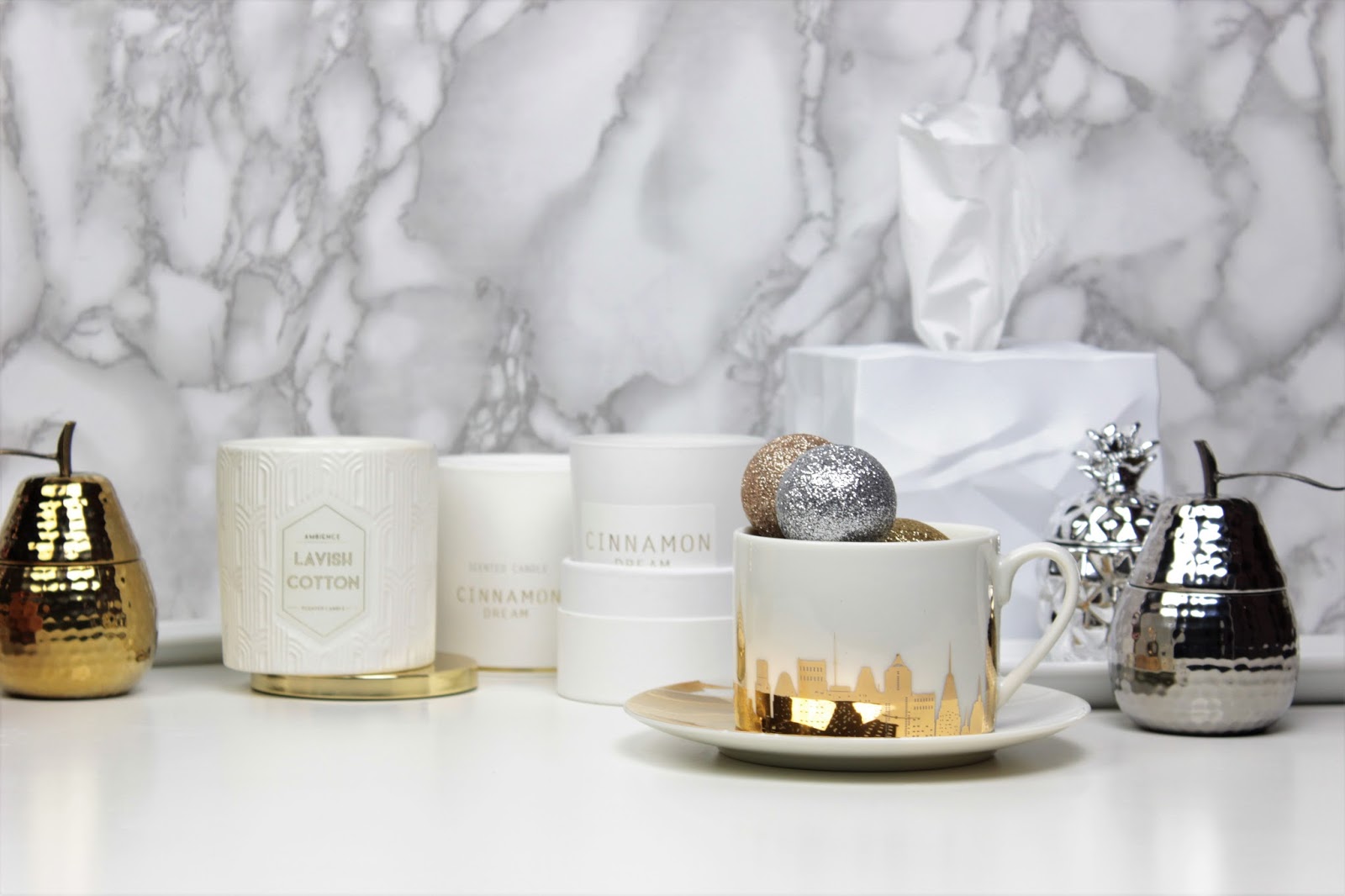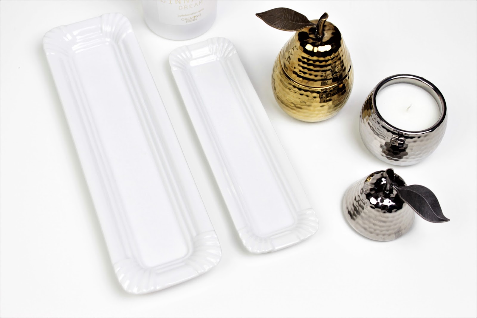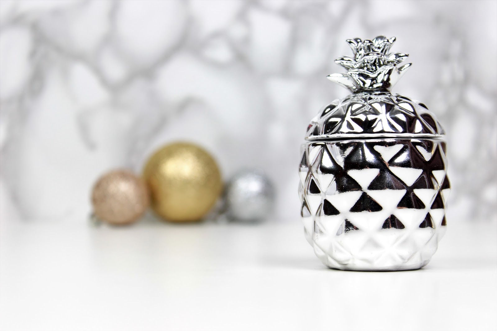 Od zbytku mé rodiny jsem dostala hromadu svíček a různých dalších drobností a s pocitem, že stoprocentně museli vykoupit celé HM Home, jsem se upřímně radovala. Moje obsese focením je už všem známá a také všichni vědí, že jsem ke kosmetice začala sbírat také doplňky právě na focení a různé dekorace, abych měla na fotkách alespoň nějakou variabilitu. Kdo by chtěl pořád koukat na jeden velký bílý ananas, že. 😉 A tak k němu přibyl ještě jeden malý stříbrný a dvě voňavé svíčky ve tvaru hrušky.