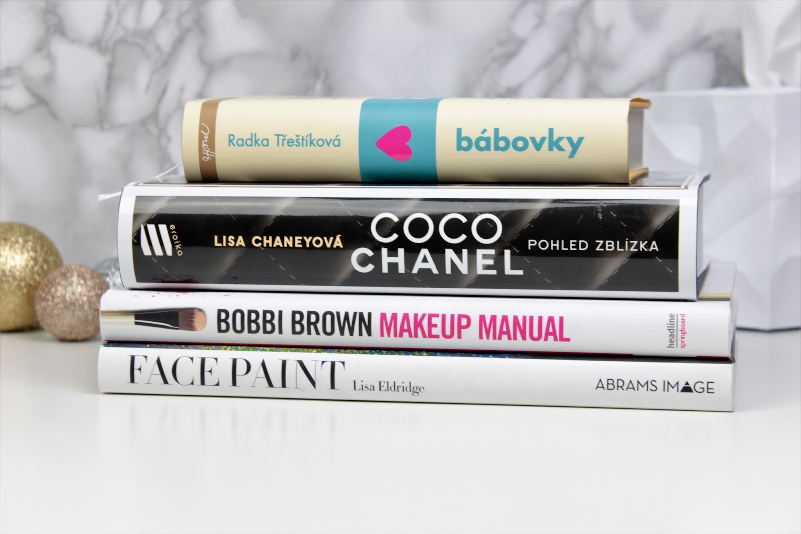 Víceméně také od manžela je několik knih, které jsem si pod stromeček vybrala a objednala sama a mám z nich neuvěřitelnou radost! Nesmí chybět blogerkami oblíbený román Bábovky, který jsem vzala ze zvědavosti a jako oddechové čtení. Nietzcheho už mám plné zuby. 😀 A protože knih, které budou vypadat dobře na fotkách, není nikdy dost, vybrala jsem si ještě Coco Chanel Pohled zblízka, protože mě tohle méně klasické pojetí zajímá. Dlouho jsem také koukala na Face Paint History of Makeup od Lisy Eldridge, kterou určitě všichni znáte z YouTube a Bobbi Makeup Manual. Ten jsem vzala čistě jen z lásky k Bobbi. Nepředpokládám, že bych se z něj naučila nějaké převratné novinky, ale kdo ví, nechám se překvapit. 🙂