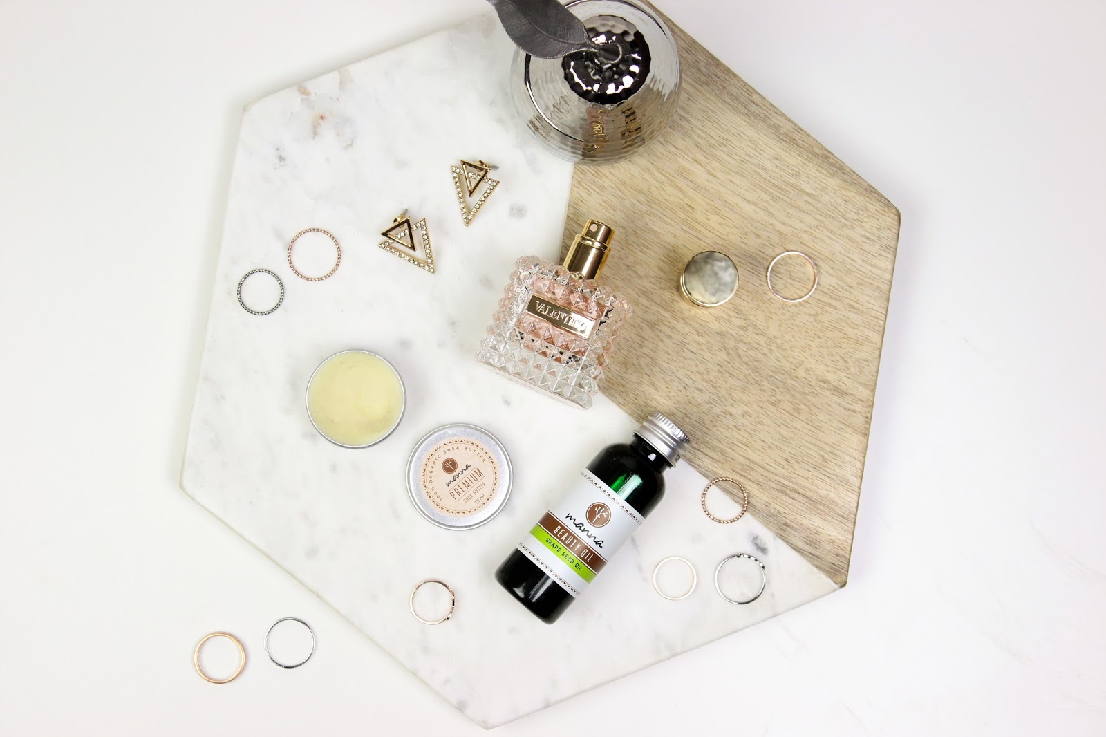 Dárek od někoho, kdo vás zná, prostě poznáte. A tak jsem pod stromečkem našla naprosto dokonalé mramorové prkénko z Nordicday – které je z části dřevěné a z části mramorové. Vypadá naprosto luxusně a budu s ním mít ty nejhezčí fotky na světě! 🙂 Samozřejmě díky tomu prkénku, nikoliv díky mým schopnostem a dovednostem. V neposlední řadě jsem také dostala tři produkty od značky Manna, kterou velmi často vídám na Facebooku. Znám ji hlavně díky tuhým mýdlům, ale nikdy jsem nic nezkoušela. Proto jsem ráda, že to teď mohu napravit. Konkretně jsem dostala právě tuhé mýdlo, bambucké máslo a hroznový olej – který je prý mimochodem opravdu skvělý, takže se teď těším ještě víc.