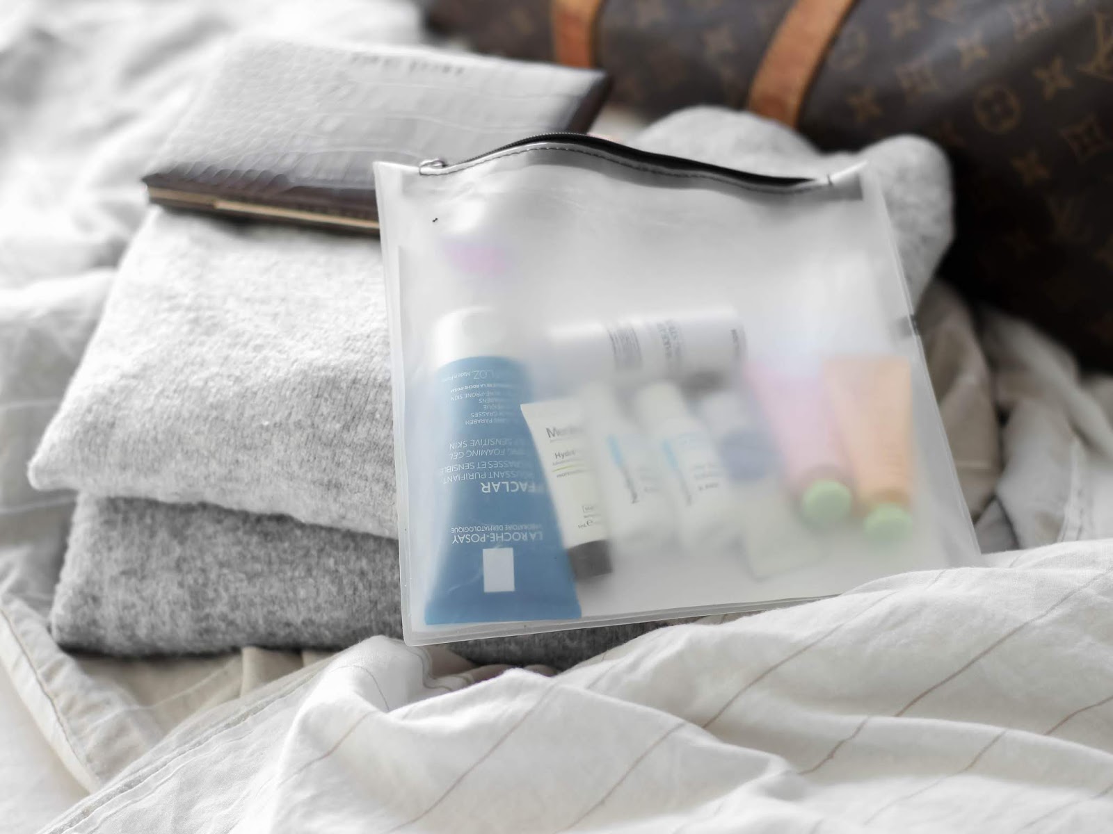 Cestování je také čas na použití všech těch roztomilých miniaturek mých oblíbených produktů, které si schovávám právě za tímto účelem. Z péče je to opravdu mini verze Oily Skin Solution, mého oblíbeného kyselinového tonika a miniatura Bobbi Brown Hydrating Face Cream. Je totiž univerzální, dobře hydratuje a funguje i pod makeup a jako noční krém mi poslouží miniatura krému od Medik8, sérum a noční maska.