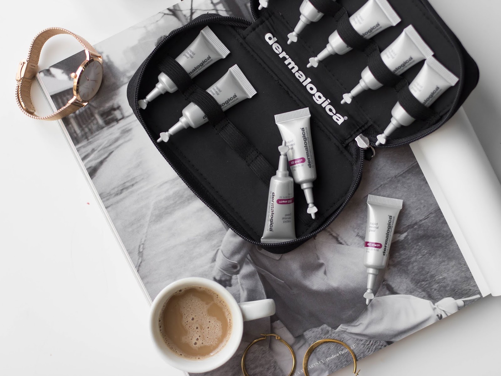 Co samozřejmě nemůže ve výčtu mých oblíbených Dermalogica produktû chybět, je domácí peeling *Rapid Reveal Peel. Také už jsem ho zmiňovala v článku o kyselinách, protože to je nadstandardně účinný a dobrý produkt. Nemusíte se bát vyšší pořizovací ceny, protože v balení máte 10 tubiček s peelingem, jednotlivě zabalených. Obecný návod je, použít tři trubičky tři po sobě jdoucí dny a následně pak jednu tubičku každý týden, nebo podle potřeby, takže vám balení vydrží určitě dva měsíce, což je za domácí peeling přijatelná cena.
