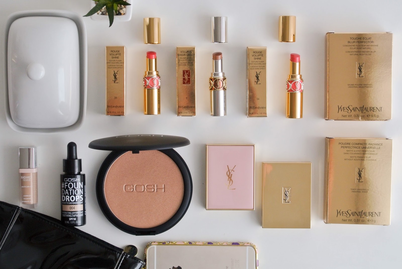 V červnu probíhala ve Fann parfumerii akce Festival Péče a Líčení, kdy bylo na vše kromě vůní dvacet procent dolů. Nakonec jsem tedy udělala objednávky dvě. Už dlouho jsem chtěla zkusit něco od YSL a to hlavně jejich rtěnky kvůli obalům, proto jsem si pořídila rovnou tři. Rouge Volupté 34, Rouge Volupte Shine 31 a Volupte Sheer Candy 01. Stejně tak jsem přihodila vyhlášený bílý transparentní pudr Poudre Compact Radiance a kvůli obalu jsem vzala i Touche Eclat Blur Perfector, což je vlastně něco jako báze pod makeup, která má „rozmazat“ nedokonalosti a vytáhnout na povrch zdravou barvu pleti. Ale jako vidíte ten obal, že ano? 😀
