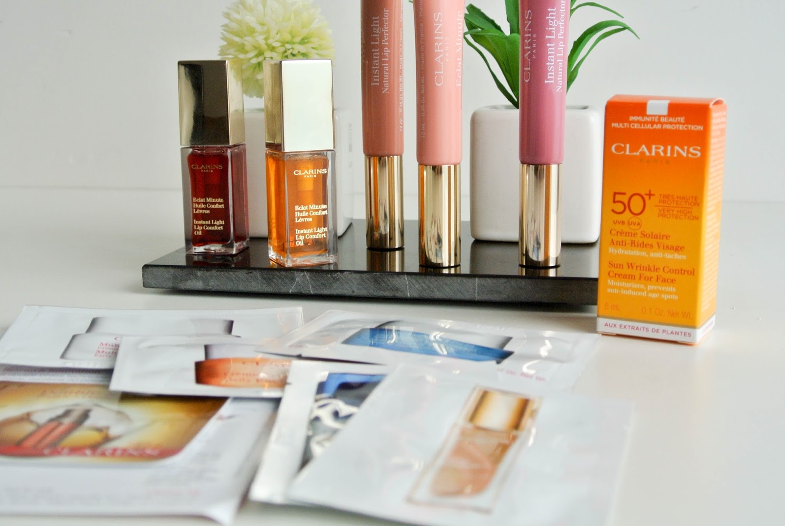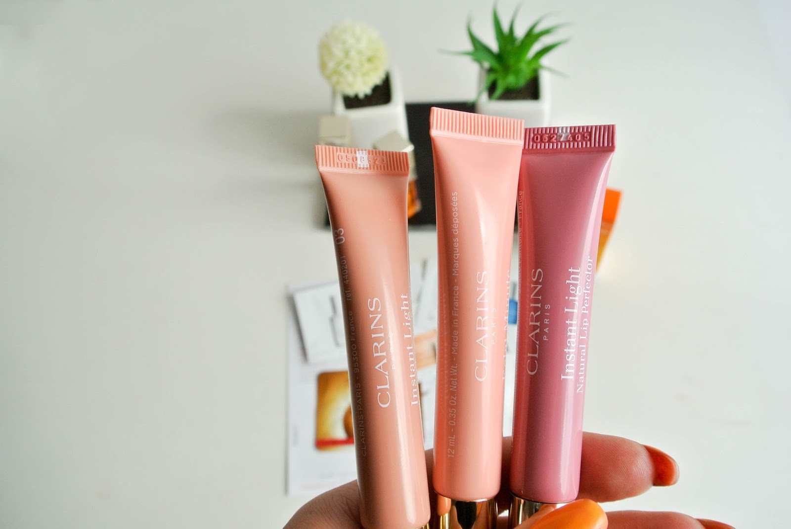 Také jsem zabrousila ke Clarins, protože ten se stává mou novou velkou vášní. Značka je mi ultra sympatická a rozhodně s ní ještě nekončím. Vzala jsem tři kousky Instant Light Lip Perfector, o kterých jste mohli číst třeba TADY a Instant Light Lip Comfort oil v odstínech 01 a 03, které jsem porovnávala s Milani oleji ZDE.