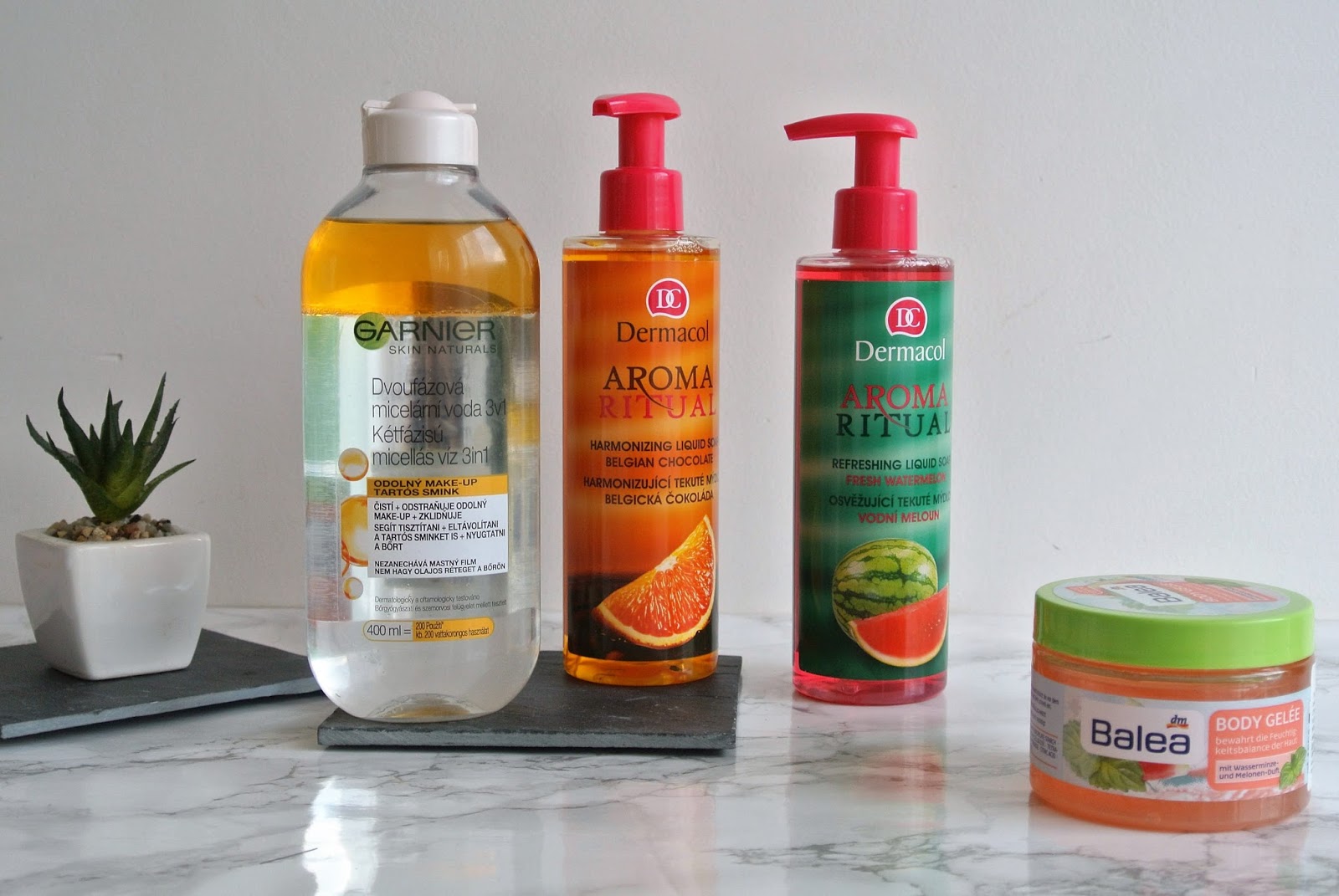 Měla jsem pocit, že kdo nemá Olejovou micelárku od Garnier, jako by nežil. Mluvilo se o ní všude a já jsem ji moc chtěla zkusit. Stejný případ pak bylo tělové želé Balea, o kterém jsem si myslela, že bude ideální právě na léto. Odličovací ubrousky Balea Vital jsem vzala kvůli jejich hydratačním schopnostem a už jsem je také spotřebovala (a viděli jste je ve spotřebovaných za minulý měsíc TADY). Tekutá mýdla na ruce Dermacol jsem vzala poprvé a ve dvou různých variantách čistě z technických důvodů, kdy mi u obou umyvadel došla tekutá mýdla. 🙂