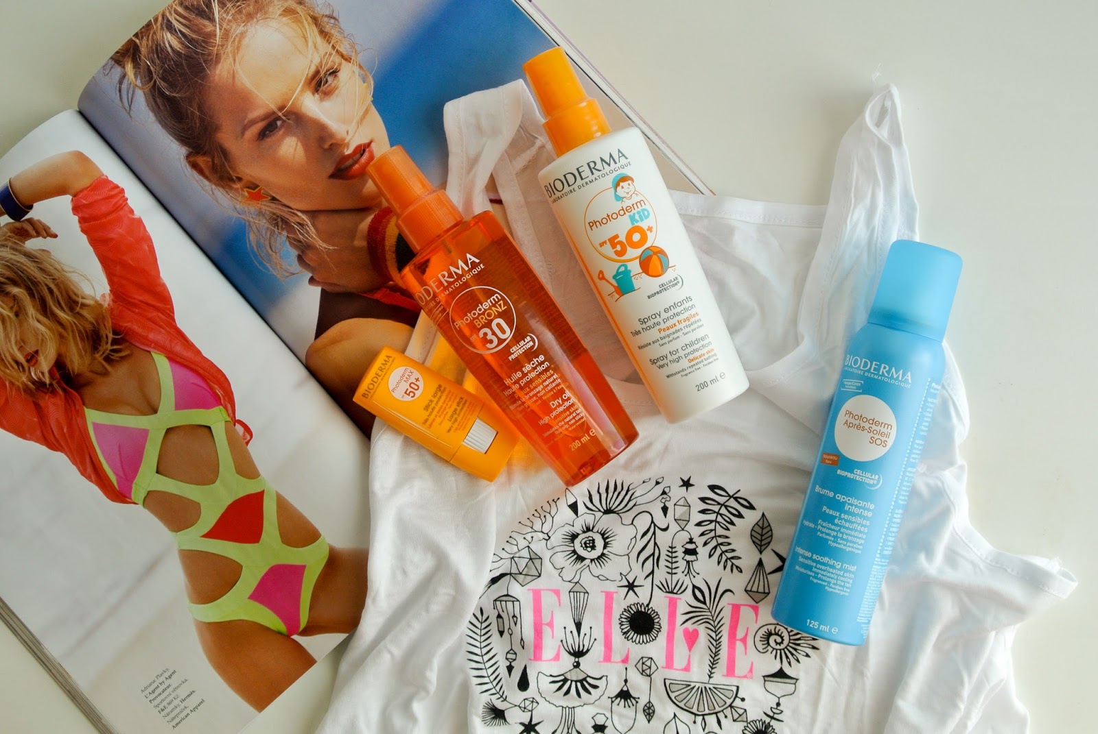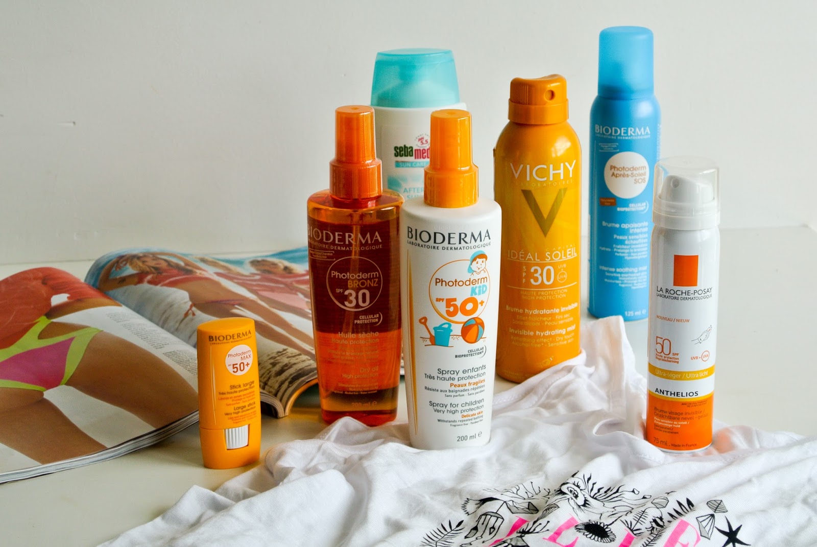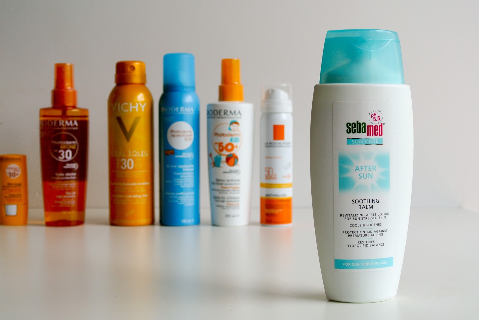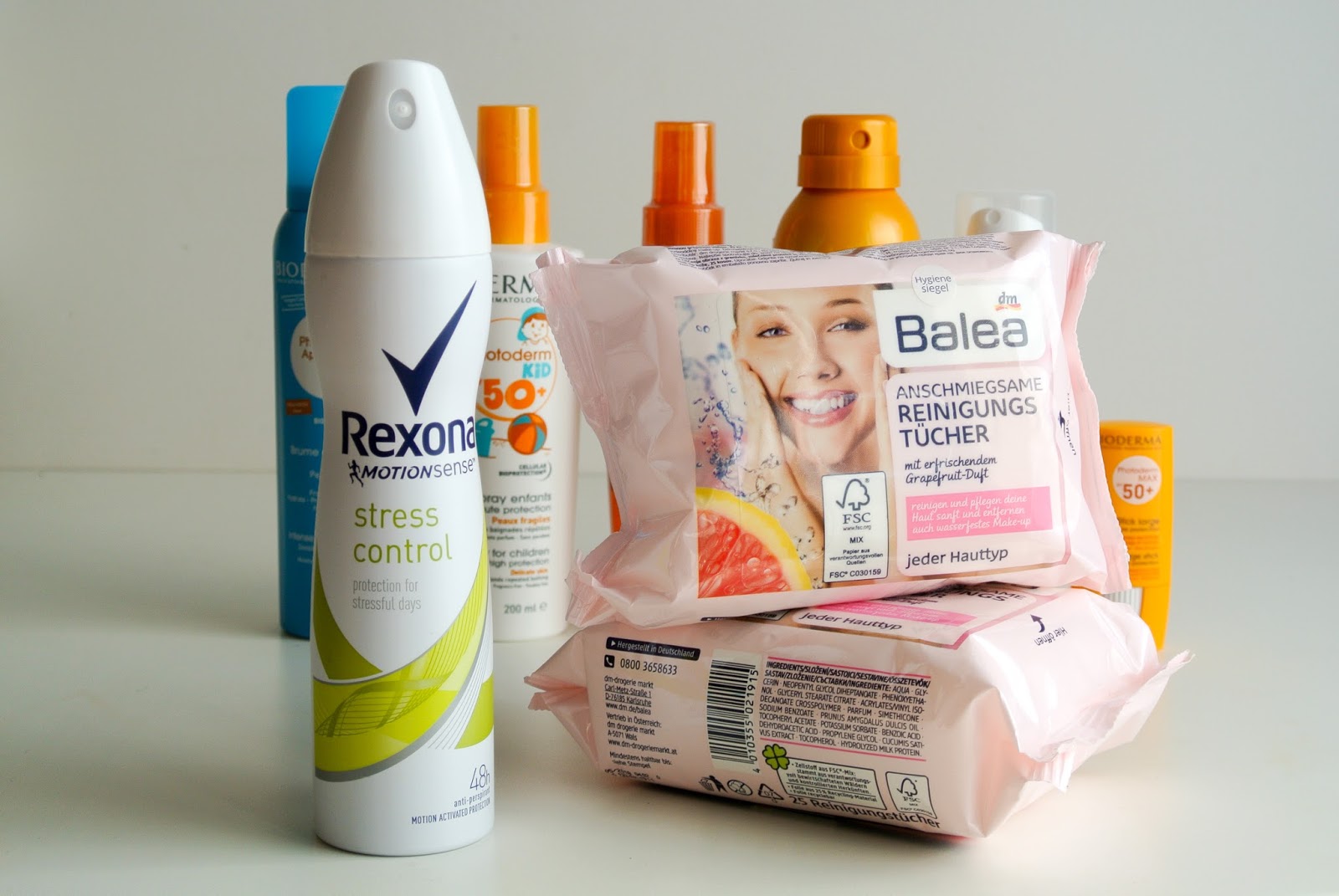 Posledním nákupem těsně před odjezdem na naší dovolenou, byly prostředky na opalování a po opalování. Brala jsem některé své osvědčené kousky jako je třeba Bioderma Photoderm Bronz opalovací olej a Photoderm SOS sprej po opalování a pak také nějaké nové, například Sprej na obličej s faktorem SPF 50 od La Roche Posay, sprej na tělo s ochranným faktorem jako refresh mezi mazáními od Vichy (dobrý nápad btw) a tyčinku Bioderma s faktorem SPF 50, kterou jsem si mazala jak rty, tak okolo očí. Dalších pár produktů bylo třeba mléko po opalování Sebamed a samozřejmě mléko s ochranným faktorem 50 pro mého syna Bioderma Kids. Na fotkách také ještě zapomenutá část nákupů z DM a to antiperspirant Rexona a odličovací ubrousky Balea, tentokrát Grep.