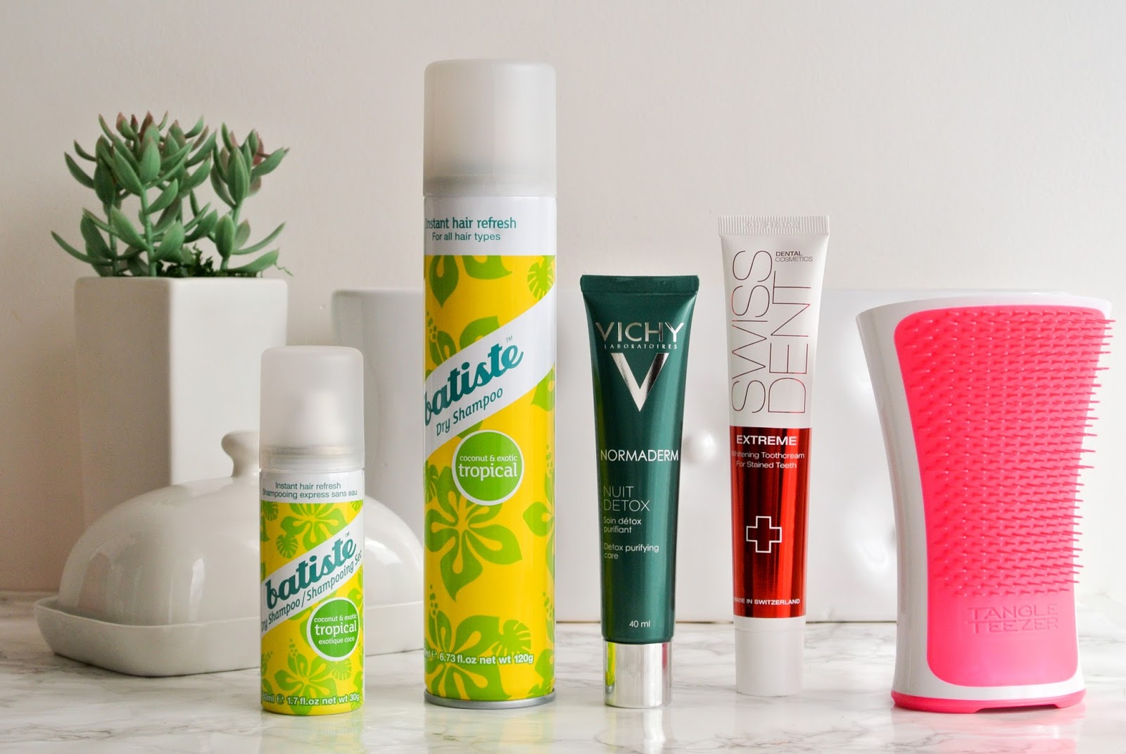 Maličkosti o kterých jsem mluvila byly opravdu maličkosti. Chtěla jsem zkusit Make Me Brow od Essence, ale v žádné z drogerií kam chodím ho nikdy nemají. Stejně tak je z nějakého záhadného důvodu všude vyprodaný můj oblíbený suchý šampon Batiste s vůní Tropical. Chtěla jsem ho tedy jak v cestovním balení do kabelky, aby nahradil ten stávající, tak v balení plném, abych se konečně mohla zbavit dvou předešlých – ne tak úplně dobrých suchých šampónů.