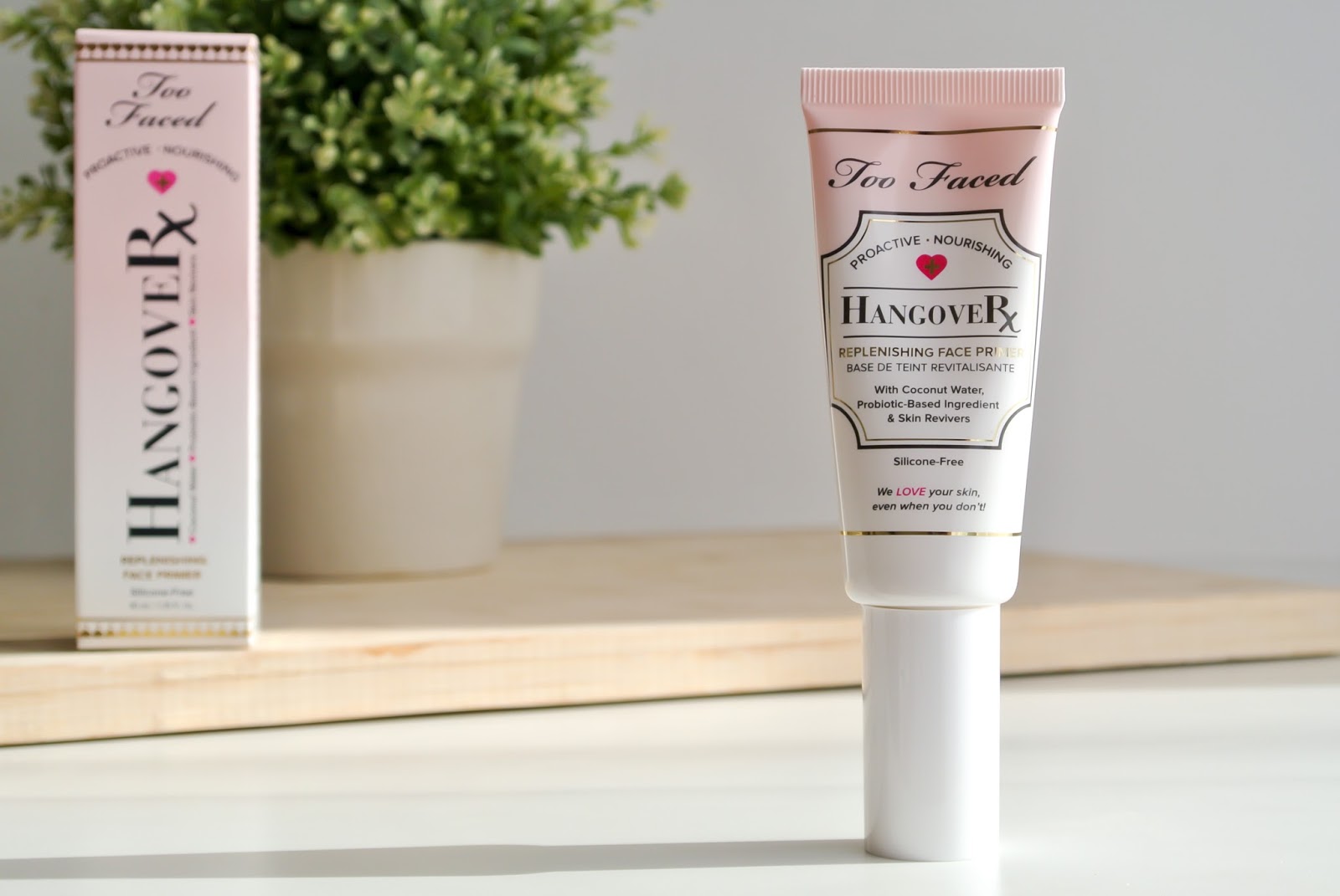 Odškrtla jsem si také další dva produkty, které byly na mém wishlistu už nějakou tu dobu, a to Naked Skin makeup od Urban Decay, který mi paní v Sephoře vybrala v odstínu 4,5. Tvrdila, že čtyřka na mě bude moc žlutá. Pro příště jsem poučena a budu se řídit svým instinktem a svojí extra žlutou pletí a vyberu si opravdu nějaký warm odstín, protože bych klidně snesla něco mnohem víc žlutého. Druhým produktem byla báze pod makeup od Too Faced Hangover Primer. Nalákal mě obsah kokosové vody i avizované hydratační a zjemňující účinky a to vše bez obsahu silikonů. Řekla bych, že makeupů bez silikonů je určitě víc než primerů a pak je problém, že si navzájem produkty nesedí.Jak už jsem psala v článku Proč makeup na pleti nevypadá dobře (TADY), podklad i makeup by měly být produkty se stejným základem.