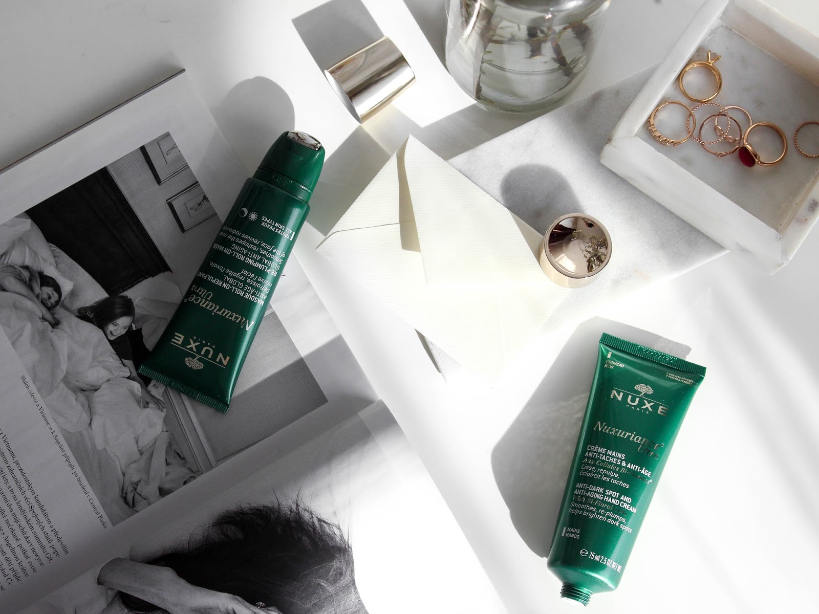 Přišla mi také novinka, anti age krém na ruce, proti pigmentovým skvrnám a roll on maska ze stejné řady Nuxuriance. Osobně pro tyto dva produkty využití nenajdu, ale masku jsem zkoušela a byla moc příjemná, krémová a roll on je fajn oživení a co se krému na ruce týče, i ten je příjemný a velmi dobře hydratační. Předpokládám, že se mezi vámi najde někdo, koho by tyto dva produkty mohly zajímat. Takže hlásím, že masku, kterou už jsem měla někdy minulý rok, jsem darovala své mamce a ta je z ní nadšená a také se jí líbí roll on a s ním spojená masáž. A já vám pak třeba někdy podám report, co bude říkat na nový krém na ruce.