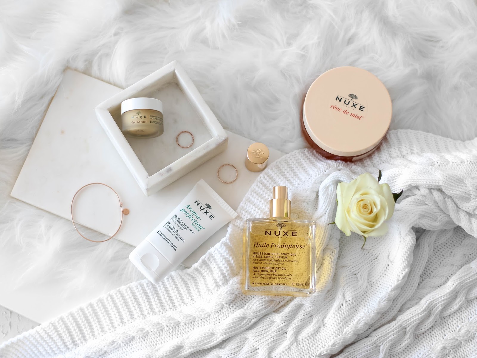 I od značek NUXE a Puressentiel jsem spolu s věcmi do soutěží pro vás dostala psát věcí i já. Od NUXE moje čtyři must have produkty, o kterých mluvím neustále a říkala jsem si, že bych na ně už konečně měla udělat samostatný článek, abych pak měla v případě potřeby kam odkazovat. Dostala jsem jak jinak než NUXE suchý olej, termoaktivní čistící masku, úžasný Reve de Miel balzám na rty v kalíšku a naprosto dokonalý zahřívací cukrový peeling.