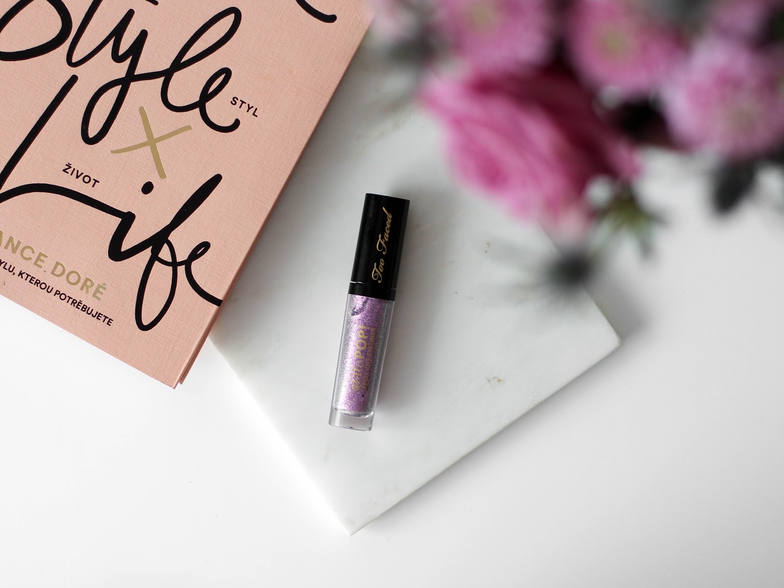 Linky Glitter Pop od Too Faced jsou třpytivě fialové v odstínu Fairy Queen. Zvláštní jsou v tom, že jsou peel-of, neboli slupovací. Jestli se ptáte, čemu by to mělo být, jasnou odpověď na tuto otázku nemám. 🙂 Možná kvůli odličování, možná jen tak. 🙂 Rozhodně je zkusím a uvidíme.