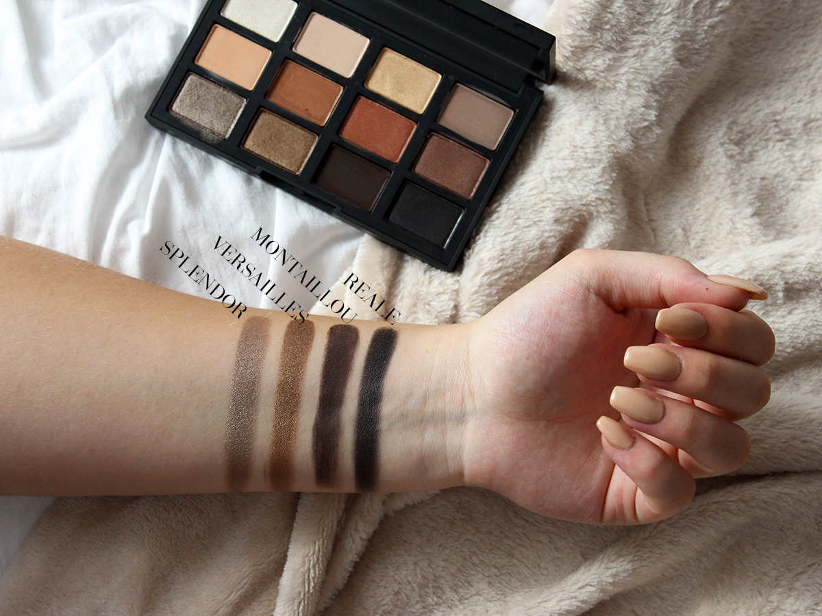 Celková pigmentace paletky je skvělá a to jak při swatchích prsty, tak při aplikaci štětcem na oko. Jedinou výtku bych měla k několika metalickým stínům, které pro plnou wow intenzitu chtějí nabrat navlhčeným štětcem. Také jsem si všimla, že zrovna navlhčení nedělá stínům Nars žádný problém a jejich textura je ještě lepší, což oceníte, pokud chcete vysokou intenzitu pigmentace a zároveň si nechcete zničit samotné stíny v paletce. Konkrétně bych za suchého stavu ocenila větší výraznost na očích u odstínů Beaumaris (prostřední řada, čtvrtý stín) a Versailles (spodní řada, druhý stín). Přijde mi, že zrovna tyhle dva stíny jsou na oku usedlejší, než je vidím v paletce. Navlhčení štětce ale samozřejmě pomůže. Ostatní metalické/lesklé stíny se přenášejí na víčko dobře a to co vidíte v paletce dostanete i na víčko a obzvlášť krásný je jediný, relativně nejstudenější stín Splendor (spodní řada, první stín).