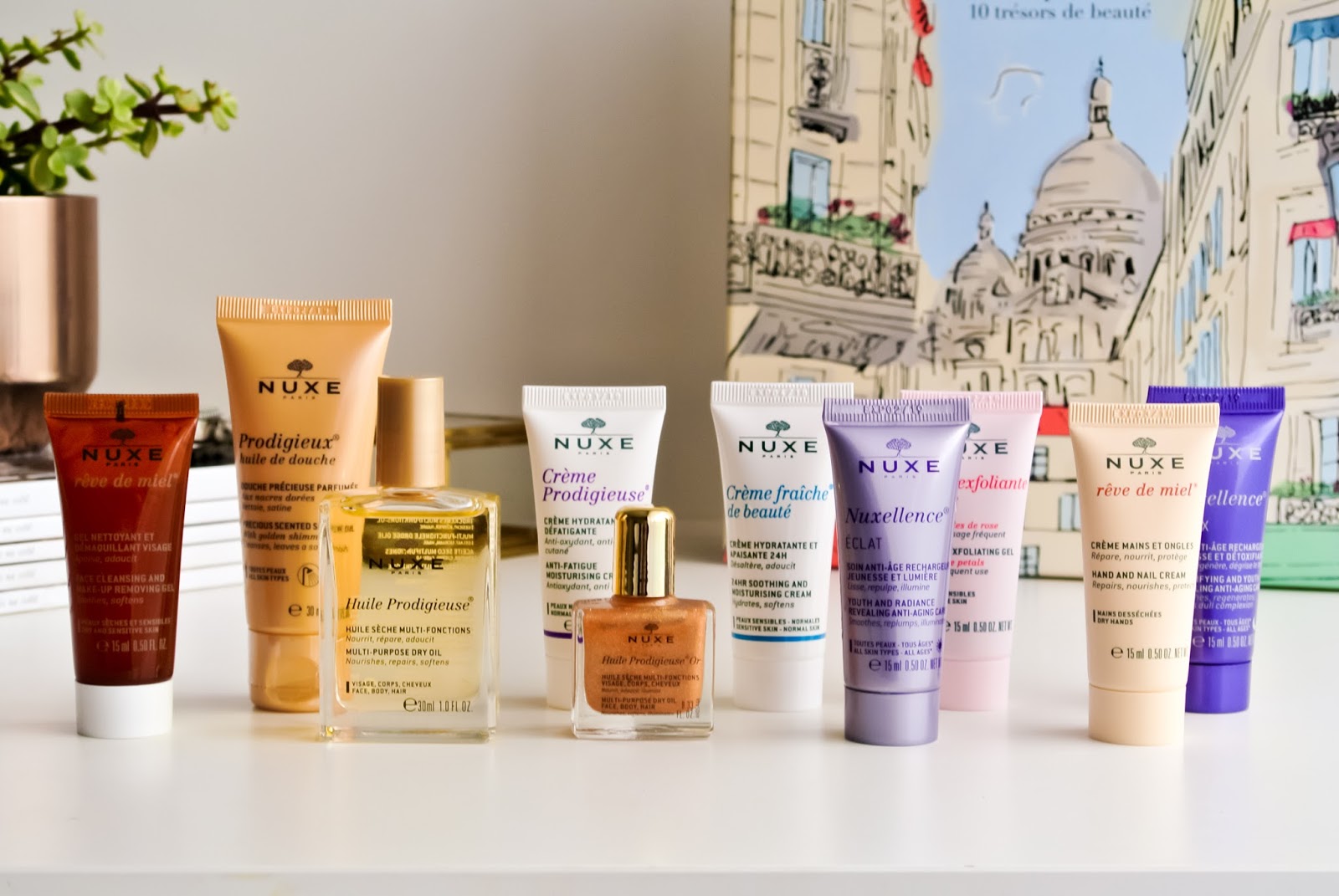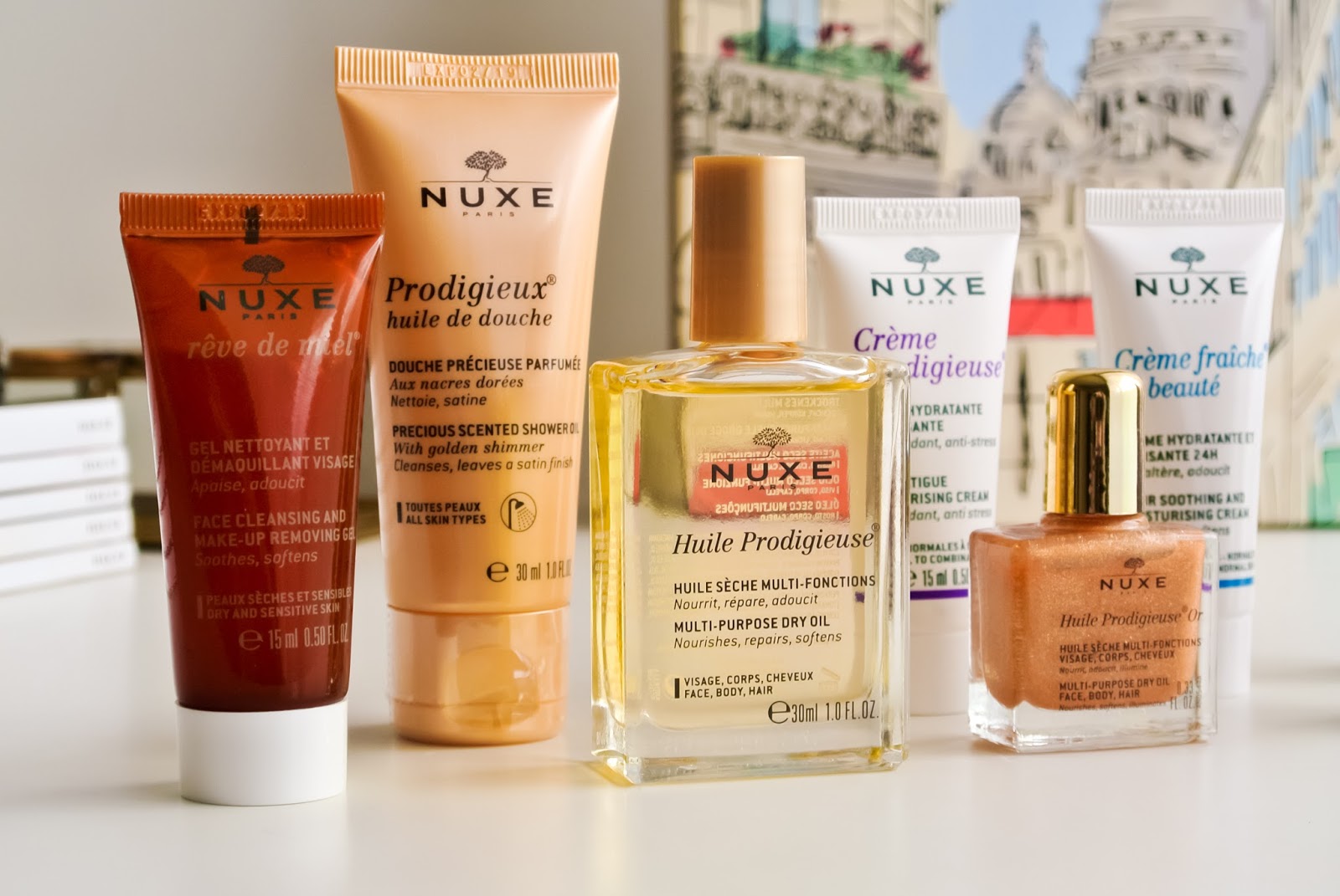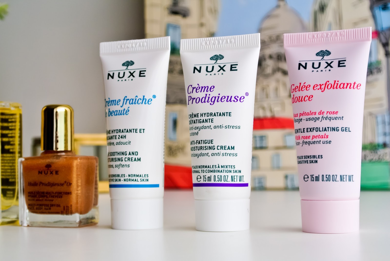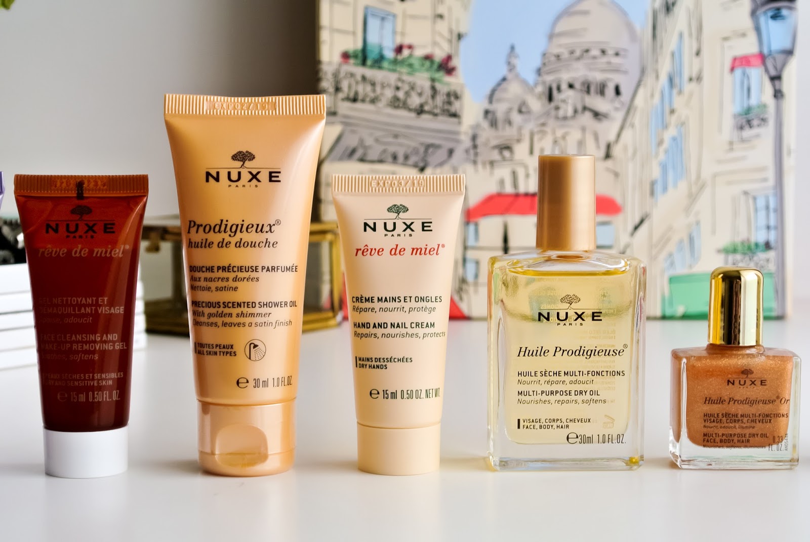 Začala bych asi naprostou klasikou, o které již není potřeba příliš mluvit. Nuxe multifunkční suchý olej Huile Prodigieuse je jako každý rok v limitovaném obalu, na kterém je tentokrát kresba Paříže. A protože se jedná o největší verzi balení, obsahuje i pumpičku s rozprašovačem, která mi leckdy u menších balení chybí, a to hlavně právě při používání na cestách.