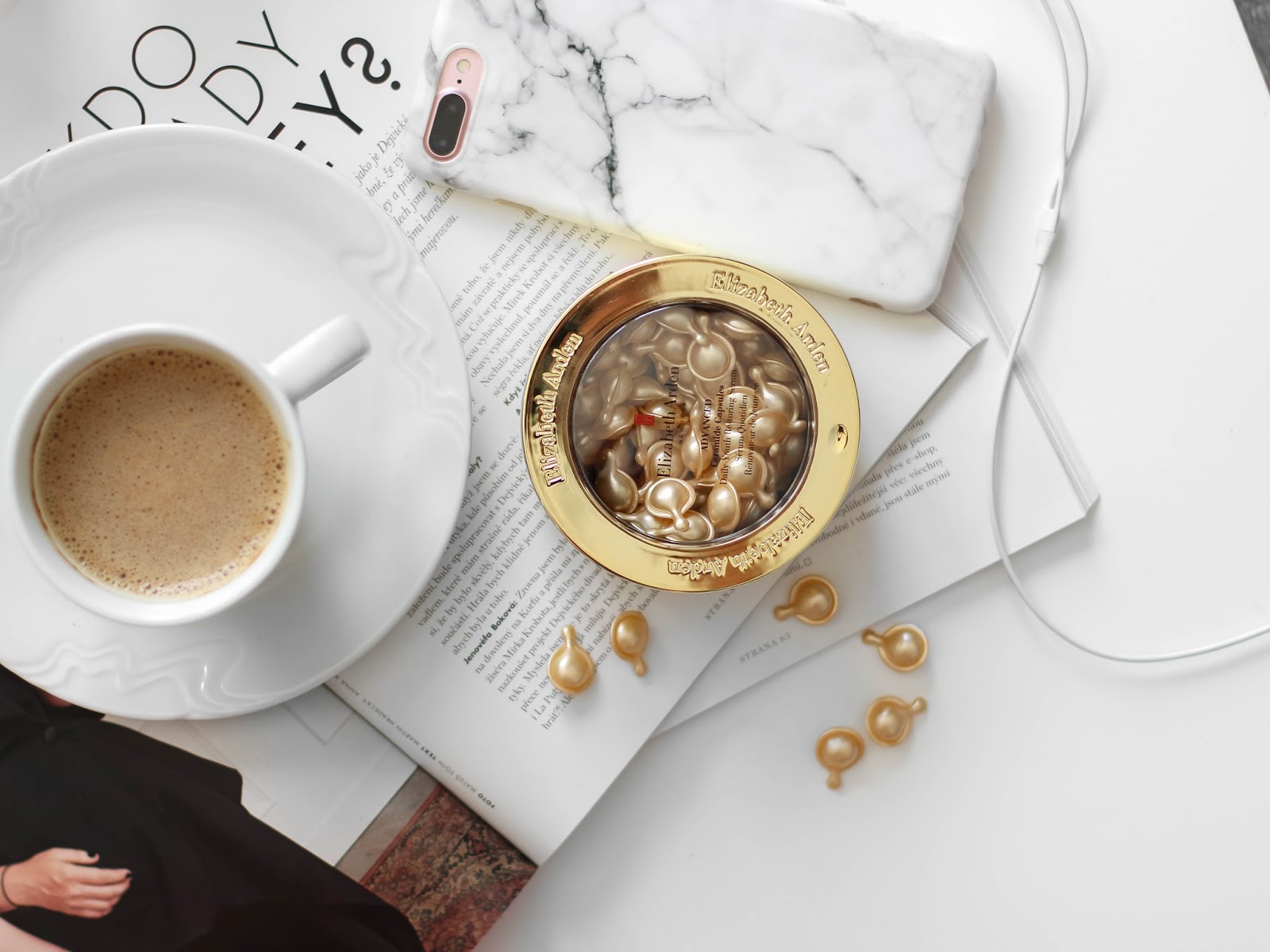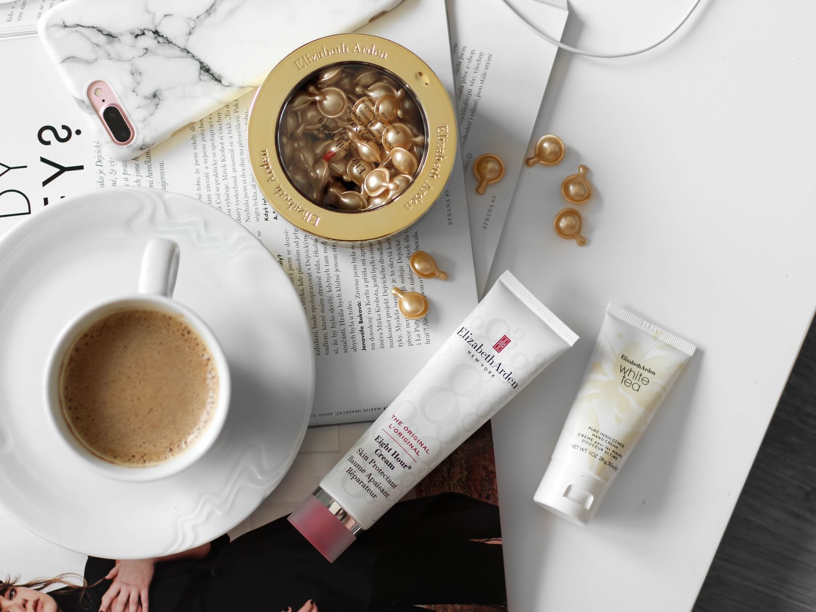 Z pečující kosmetiky jsem v dubnu začala objevovat značku Elizabeth Arden. Až do teď jsem nic nezkoušela, ačkoliv třeba kultovní mastičku/ krém Elizabeth Arden Eight Hour Cream jsem samozřejmě znala, protože ji na modelky používá nejeden makeup artista. Kromě zvláštní vůně má i typickou lékárenskou konzistenci, ze které budete mít pocit, že určitě bude hydratovat a hojit. Jak moc, vám dám vědět, protože ho zatím zkouším jen chvíli. To samé platí i o ceramidových kapslích.