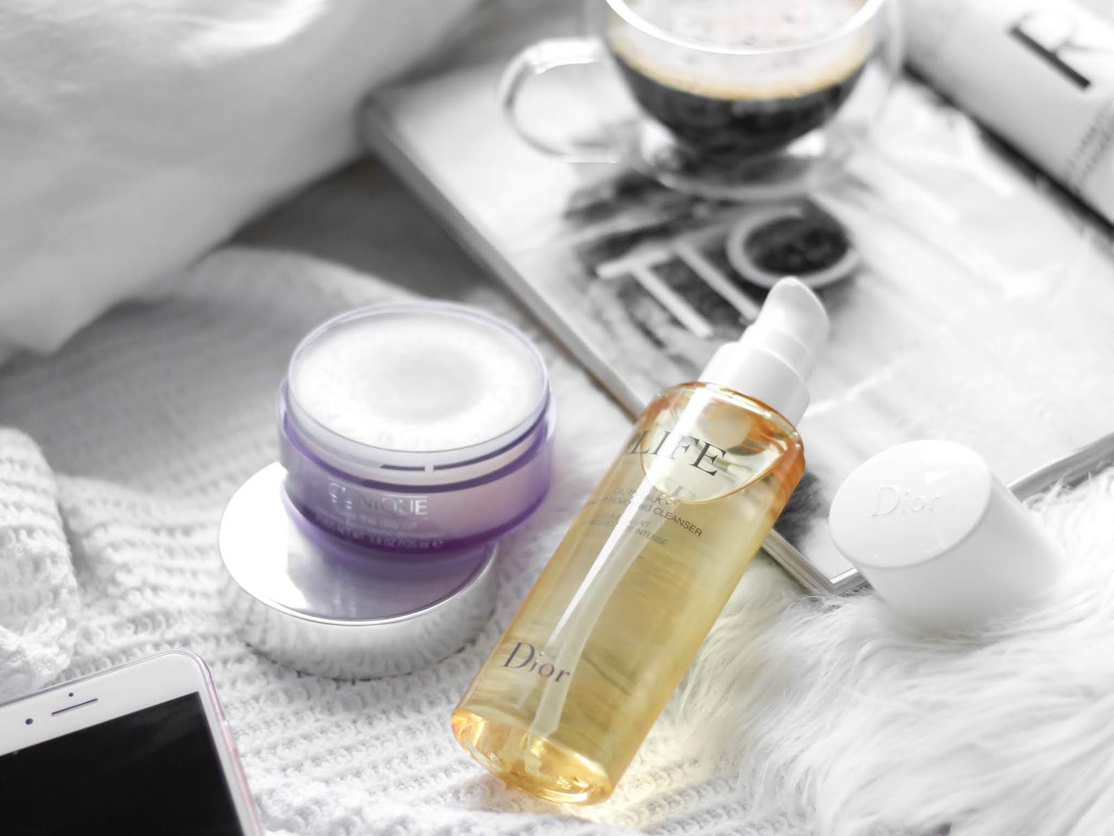 Pleť odličuji jedině olejovými balzámy / odličovacími oleji, které dokážou rozpustit a zachytit všechen makeup, mastnotu i nečistoty a pleť po nich není divně mastná. Absolutní favorité jsou, stejně jako minulý rok – Clinique Take the day off Balm (článek), tuhý olejový balzám a nově také Dior Life Oil to Milk (článek), tekutý olej, který se mění na příjemnou mléčnou emulzi. Oba jsou hydrofilní, po masáži na suché pleti jdou smýt vodou. Od té doby, co se odličuji oleji, mám taky mnohem lepší texturu pleti a Dior je teď moje číslo jedna.