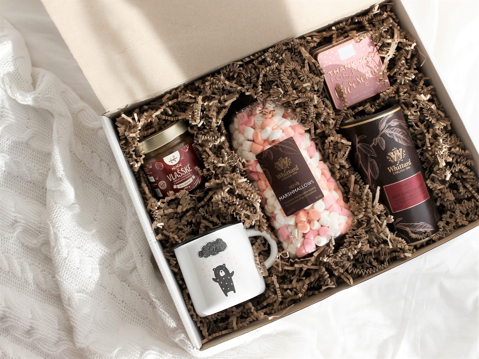 V nabídce dárkové krabičky je mnoho položek, ze kterých si balíček můžete sami poskládat, nebo si vybrat jeden z připravených. Já jsem si ten svůj zase poskládala a jsem z něj nadšená. Vybírat můžete nejen z různých dobrot, kosmetiky a drobných doplňků, ale na eshopu najdete i třeba ultra roztomilé plecháčky a samozřejmě marshmallows. Ty v zimě prostě nesmí chybět. Já si vybrala plecháček s medvídkem, horkou čokoládu s chilli, marshmallowny a taky skleničku s máslem z vlašských ořechů s vanilkou a rumem. Sbíhají se mi sliny jen o tom píšu a mám v plánu s ním namazat nějaké to vánoční cukroví, co ještě neslepené čeká na svůj čas. Napečeno mám už sedm druhů a tohle bude zlatý hřeb. :))