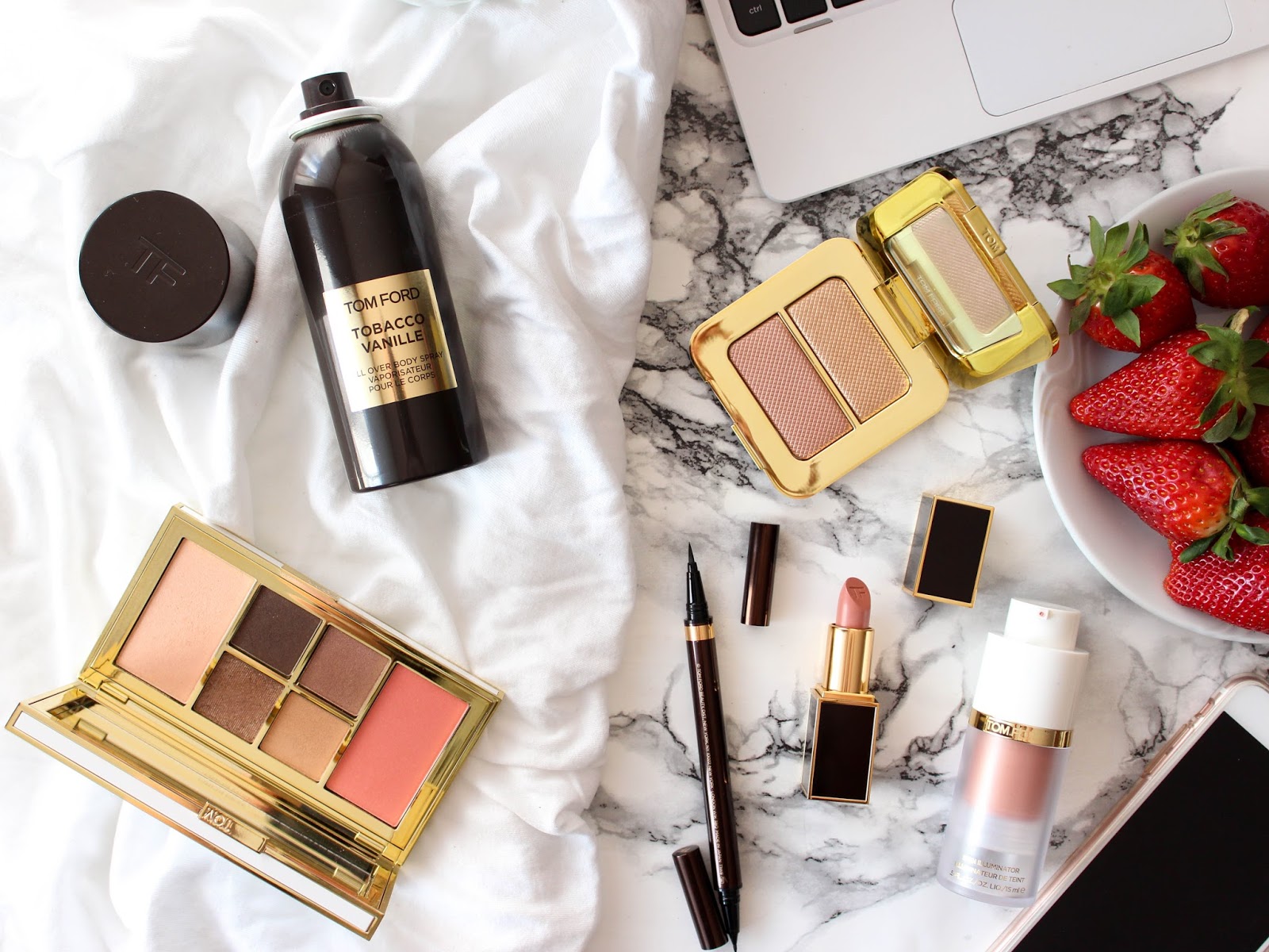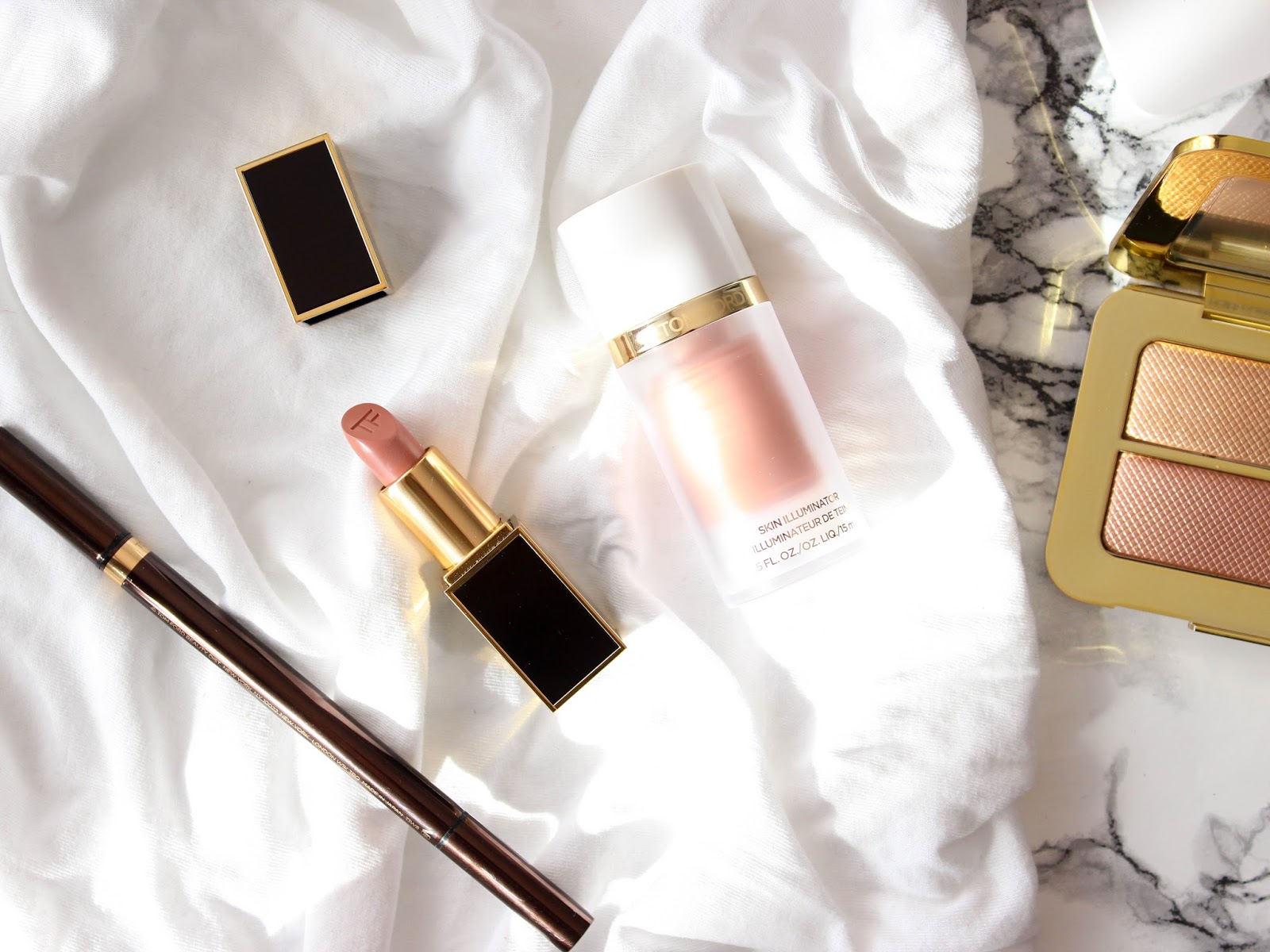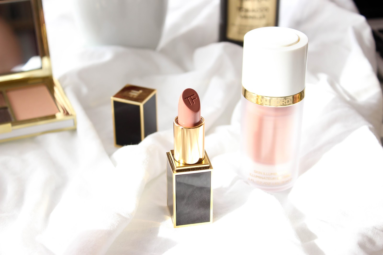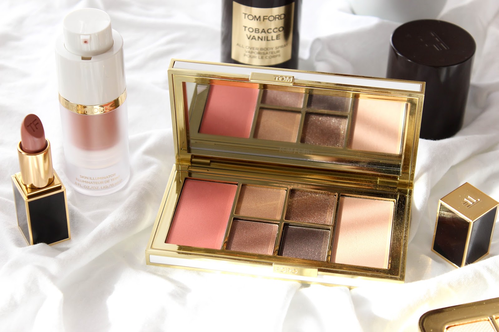 V kolekci také najdete Cream & Powder Eye Color stíny v kalíšku, Clutch-size Lip Balm balzámy na rty s kulatou špičkou pro pohodlnou aplikaci bez zrcátka, hydratační rtěnky Moisturecore Lip Color, tekutý rozjasňovač/rozjasňující bázi Skin Illuminator, bronzující primer, bronzující gel a nesmí chybět ani tělový olej se zlatými třpytkami Soleil Blanc Shimmering Body Oil. Na celou kolekci a spoustu dalších se můžete podívat na oficiálních stránkách Tom Ford, kde jsem si půjčila i promo fotky k produktům.